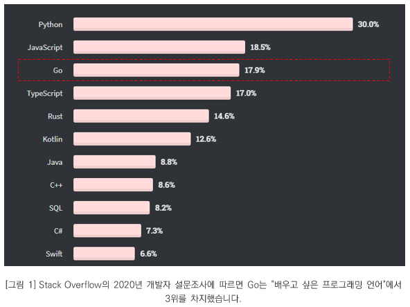 개발자가 배우고 싶어하는 프로그래밍 언어로 항상 높은 순위에 오르는 Go 언어, 주위 동료들로부터 어떤 장점이 있는지 궁금하다는 질문을 많이 받아서 정리해보았습니다.