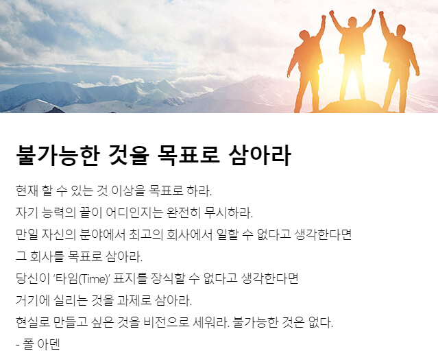 현실로 만들고 싶은 것을 비전으로 세워라. 불가능한 것은 없다.