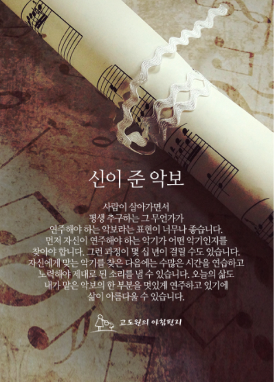 연주해야 하는 악보라는 표현이 너무나 좋습니다.