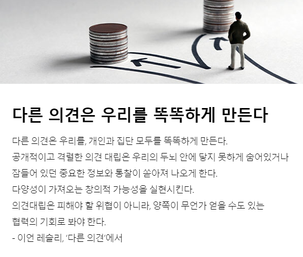 합리적인 의견 대립은 집단의 지성을 수확해내는 가장 좋은 방법입니다.