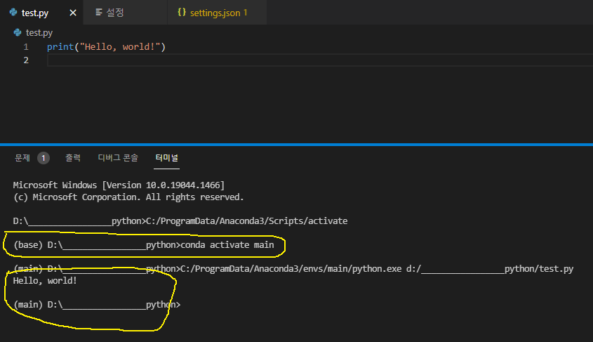 해당 편집파일에서 "Run Python File" 실행시 cmd 실행되면서 python ENV 가 activate가 되면서 파일이 실행 된다.