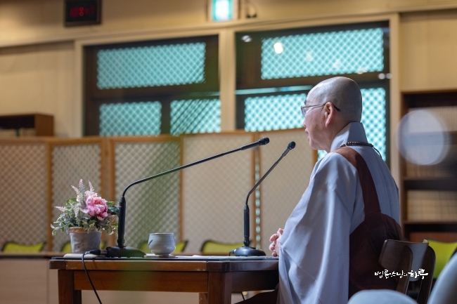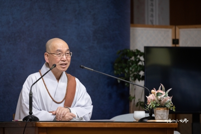 “저희 스승님이신 서암 큰스님께서 어떤 기자가 건강의 비결이 뭐냐는 질문을 받고 ‘나는 건강이라는 걸 생각해 본 적이 없소’ 이렇게 말씀하시는 걸 제가 들었습니다. 저는 어릴 때부터 몸이 건강한 편이 아니었습니다. 늘 병치레를 하는 약골이었습니다. 멀리 떨어져서들 보니까 그렇게 많은 일을 해 보이는 것처럼 보이나 봐요. 그래도 다 살 만하니까 이렇게 살지 않겠습니까? (웃음)