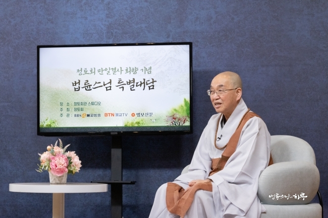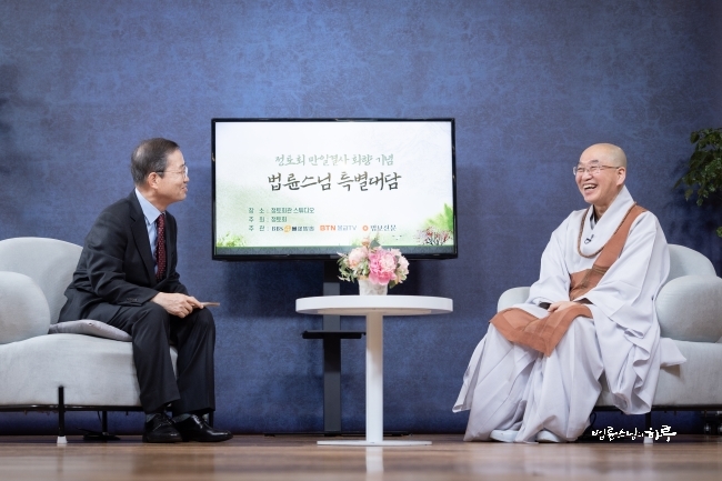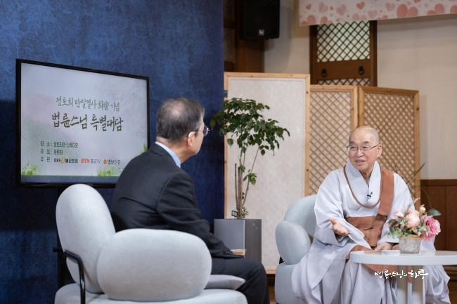“시청자 여러분, 안녕하세요! 오늘은 수행공동체 ‘정토회’ 지도법사이자 대한민국의 국민 멘토, 무엇보다 즉문즉설로 유명하신 법륜스님을 모시고 설맞이 특별대담을 마련했습니다.”
