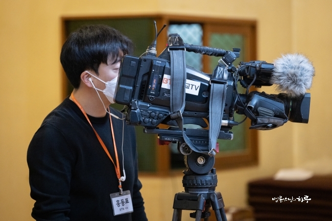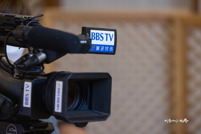 오늘 촬영에는 BBS, BTN, 법보신문에서 온 기자들이 참가했습니다. 사회는 방송인 김병조 씨가 맡았습니다. 2시가 되자, 김병조 씨의 활기찬 인사와 함께 촬영을 시작했습니다.
