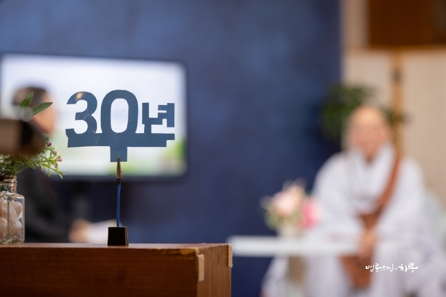 불가에서는 ‘1백 일을 정진하면 자기 모습을 알 수 있고, 1천 일을 정진하면 자기 변화를 이룰 수 있고, 1만 일을 정진하면 사회 변화를 이룰 수 있다’는 말이 있습니다. 그래서 ‘1만 일을 목표로 지금부터 정진하고 전법을 한다면 불교가 국민들과 불자들로부터 신뢰받을 수 있지 않겠느냐’ 이런 뜻으로 만일결사를 시작했어요. 당시에는 30년이 까마득하게 멀어 보였는데 지나고 보니까 별로 한 것도 없이 벌써 30년이란 세월이 지났네요.” (모두 웃음)