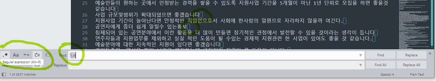 3.그리고 Replace All를 누르면 모든 줄 바꿈이 삭제 됩니다.