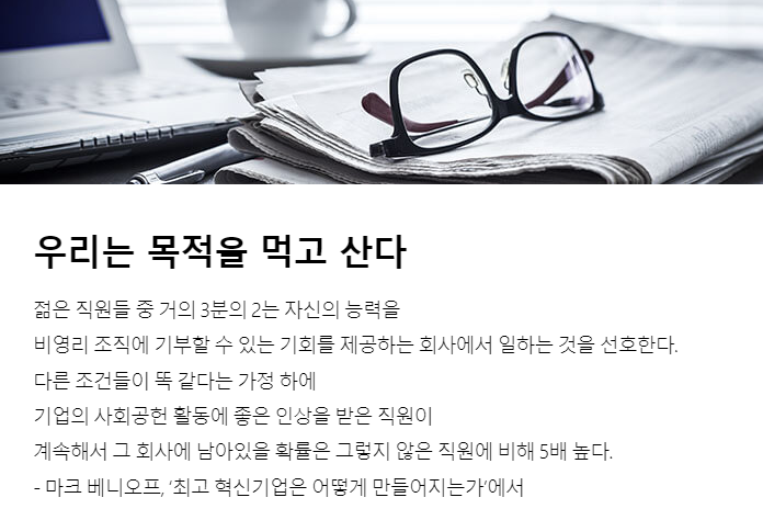 기업의 구성원은 기업이 ‘무언가에 공헌하고, 남에게 봉사하며,