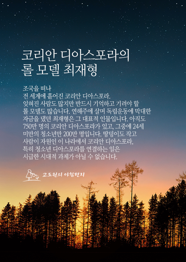 최재형 선생이야말로 미래를 짊어질 청소년들의