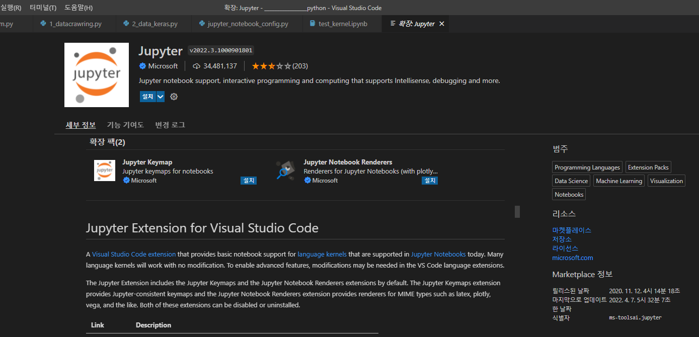 링크: https://marketplace.visualstudio.com/items?itemName=ms-toolsai.jupyter