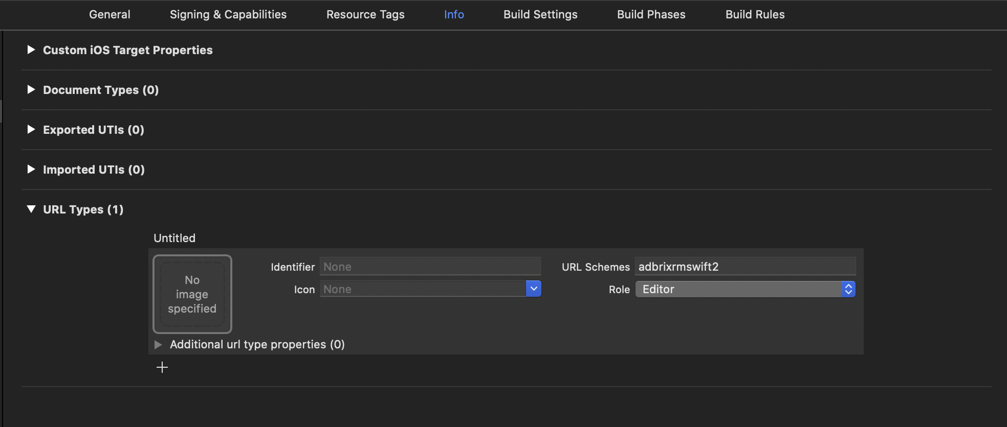 iOS 의 경우 앱 정보 화면에서 URL Scheme 항목에 스킴값을 입력할 수 있습니다.