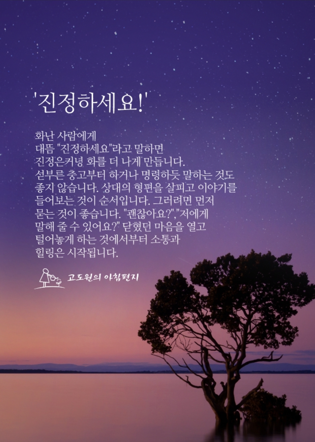 대뜸 "진정하세요"라고 말하면