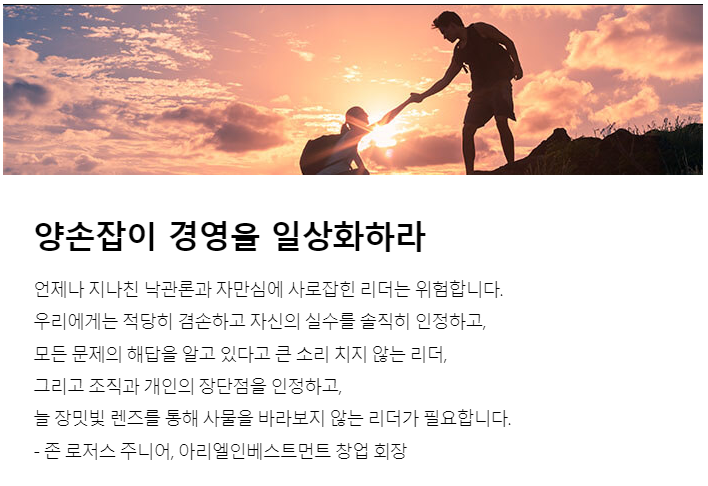 리더는 늘 양손잡이 경영을 할 수 있어야 합니다.