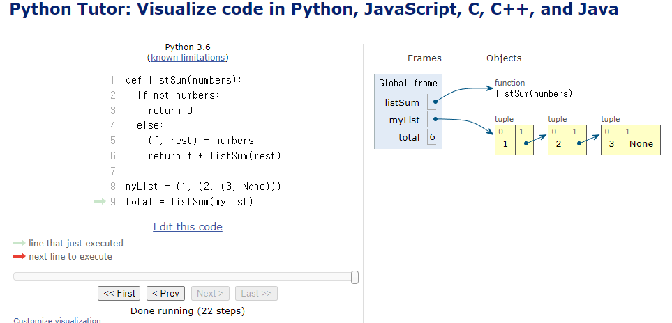 Python Tutor code visualizer: Visualize code in Python, JavaScript, C, C++, and Java