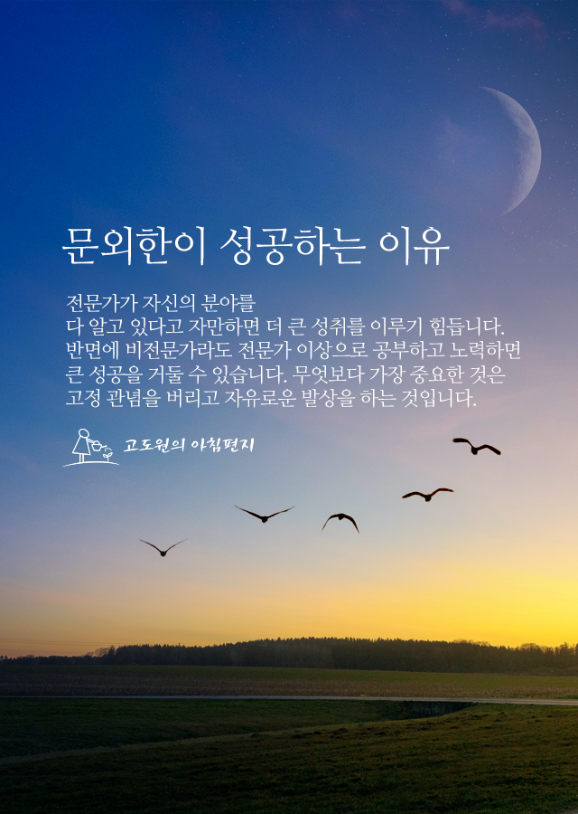 다 알고 있다고 자만하면 더 큰 성취를 이루기 힘듭니다.