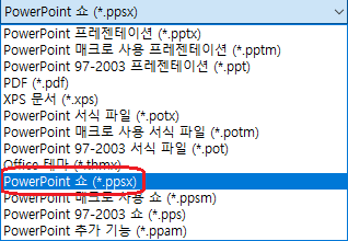 - 파일 형식 상자에서 PowerPoint 쇼(*.ppsx)를 선택합니다.