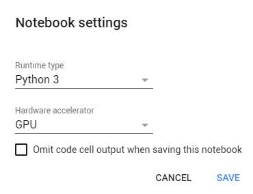 It is so simple to alter default hardware (CPU to GPU or vice versa); just follow Edit > Notebook settings or Runtime>Change runtime type and select GPU as Hardware accelerator.