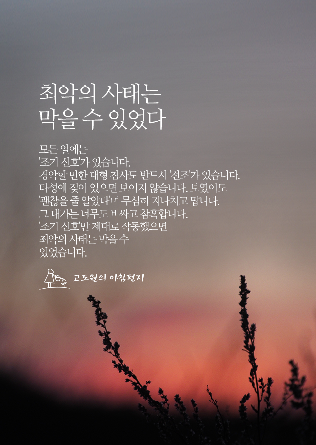 경악할 만한 대형 참사도 반드시 '전조'가 있습니다.