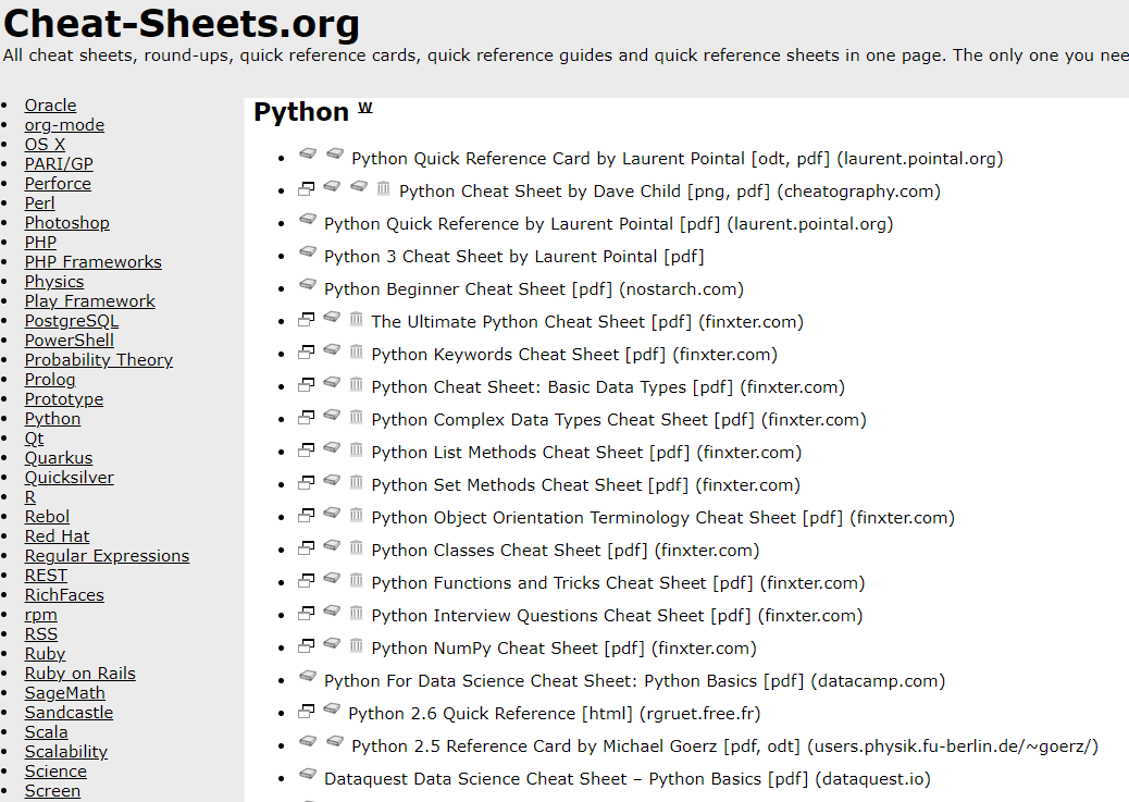 All cheat sheets, round-ups, quick reference cards, quick reference guides and quick reference sheets in one page.
