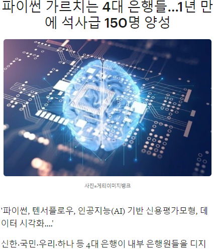 파이썬 가르치는 4대 은행들…1년 만에 석사급 150명 양성, 박진우 기자, 경제