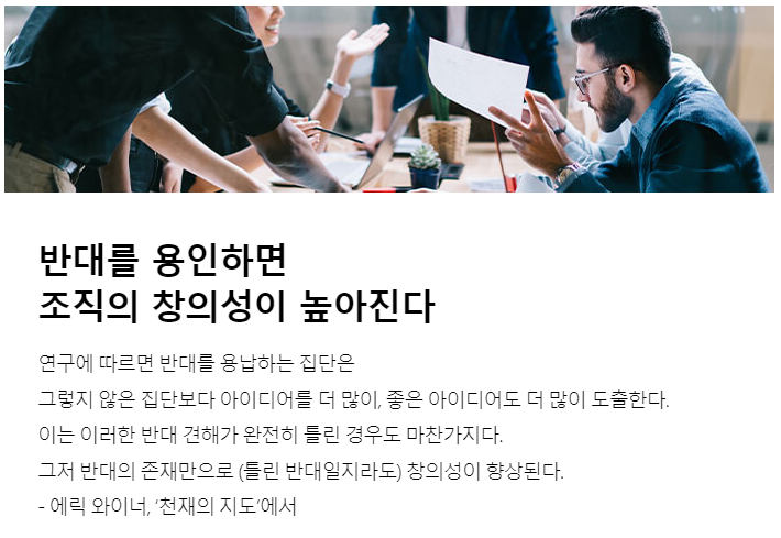 최상의 결과를 위해선 반대와 갈등은 필수불가결한 요소입니다.