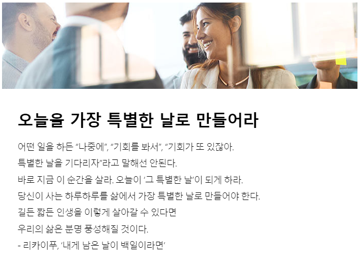 당신이 사는 하루하루를 삶에서 가장 특별한 날로 만들어야 한다.