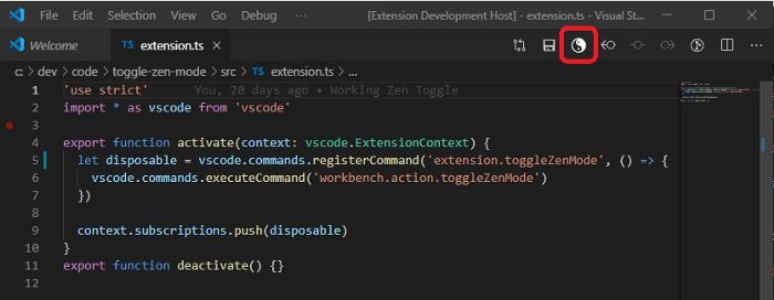 If I knew about this extension, I wouldn’t be so sloppy in my coding and could accomplish my tasks more quickly. Toggle Zen Mode adds a new button. When you press on this button, it will activate VSCode’s Zen mode feature and remove all unnecessary clutter from the screen. In other words, it helps you to be more focused on your code and fall into a flow statement, which will significantly increase your productivity and efficiency!