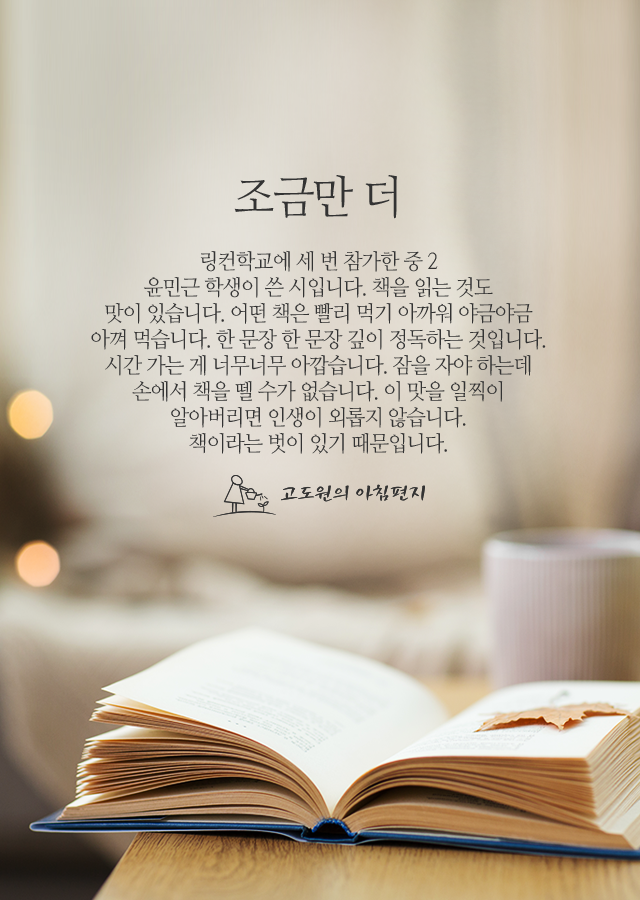윤민근 학생이 쓴 시입니다. 책을 읽는 것도