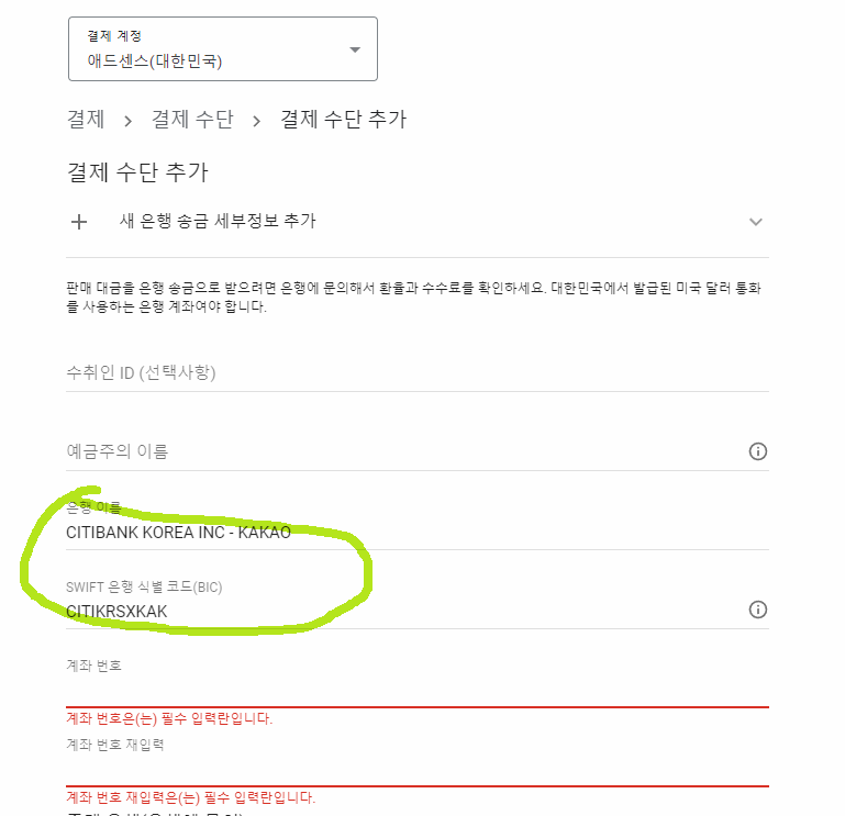 구글 애드센스 지급 계정 - 카카오뱅크로 변경 하기