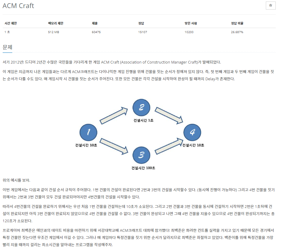 각 건물들의 건설시간 : 10 1 100 10