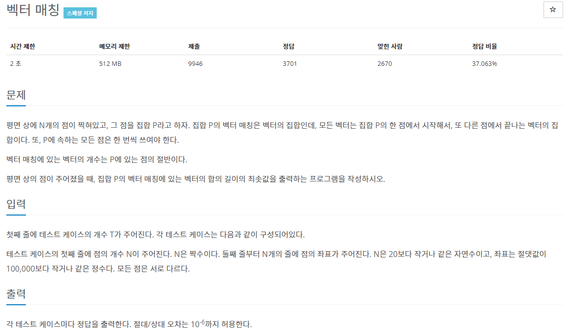 평면 상의 점이 주어졌을 때, 집합 P의 벡터 매칭에 있는 벡터의 합의 길이의 최솟값을 출력하는 프로그램을 작성하시오.