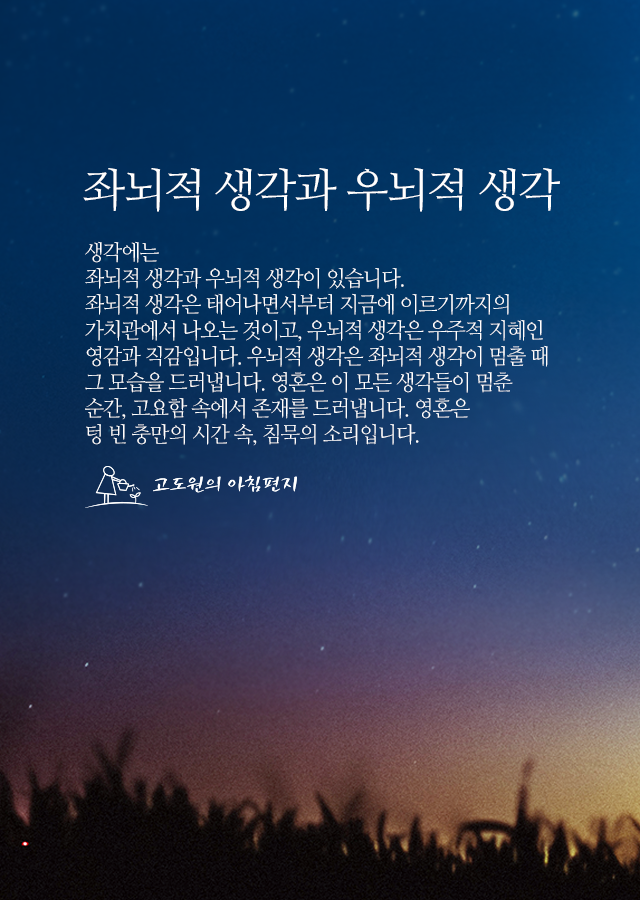 가치관에서 나오는 것이고, 우뇌적 생각은 우주적 지혜인