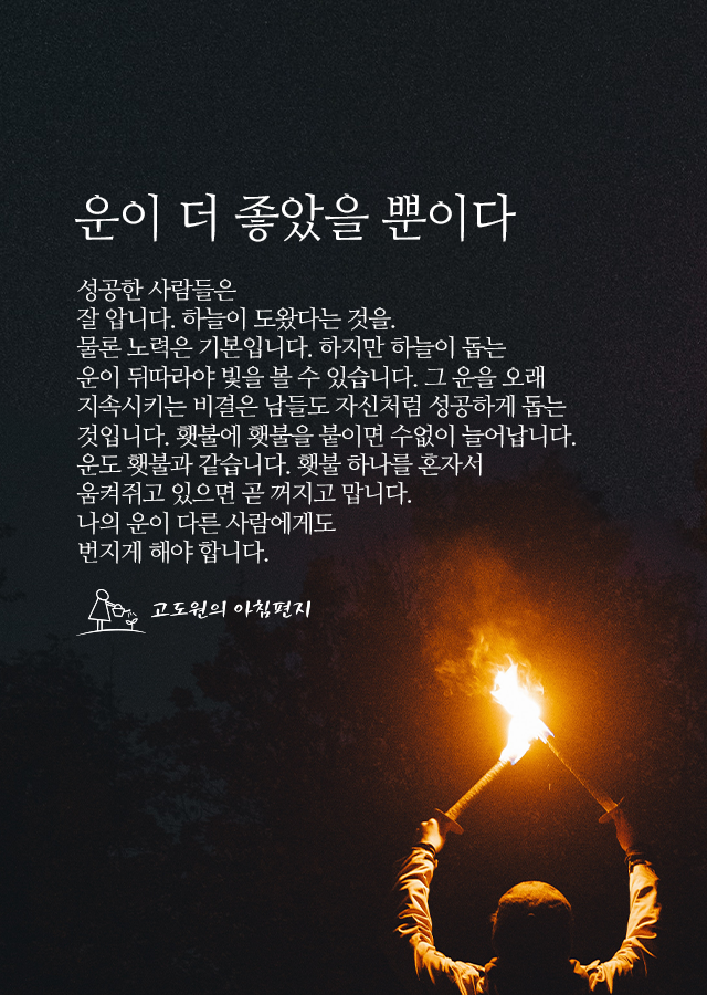 곧 꺼지고 맙니다. 운도 그렇습니다.