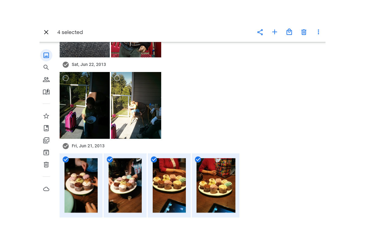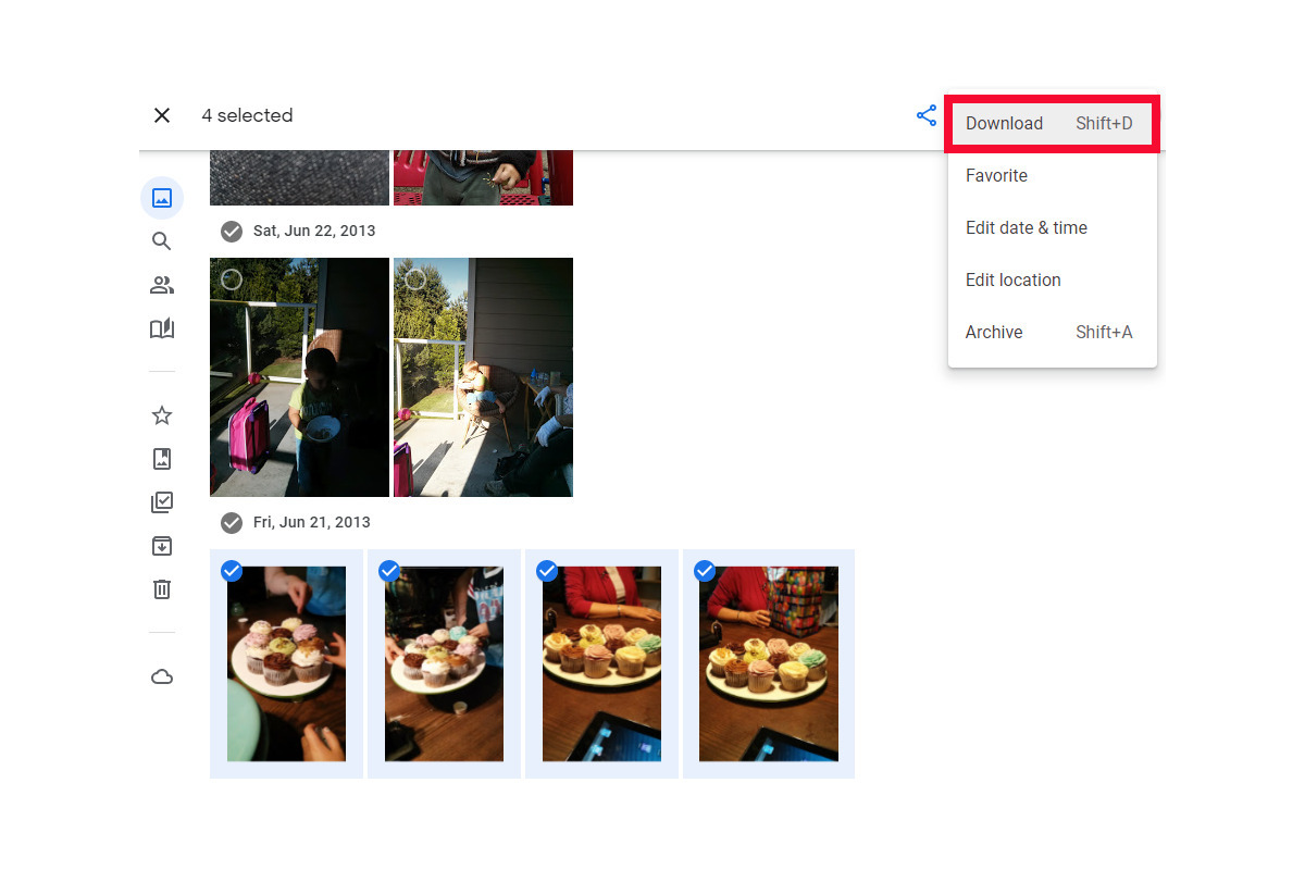 사진 몇 장만 선택해서 다운로드하는 방법은 매우 간단하다. 선택하고 싶은 사진에 마우스를 올리고 이미지의 왼쪽 모서리에 체크 표시를 표시한다. 그러면 선택 모드로 들어가며, 스크롤을 하면서 다운로드를 원하는 사진을 같은 방식으로 체크하면 된다. 특정 날짜의 사진 전체를 다운로드하고 싶다면, ‘날짜’ 옆에 체크 표시를 하면 된다.
