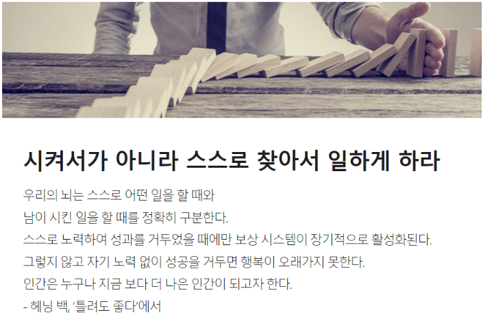 스스로 노력하여 성과를 거두었을 때에만 보상 시스템이 장기적으로 활성화된다.