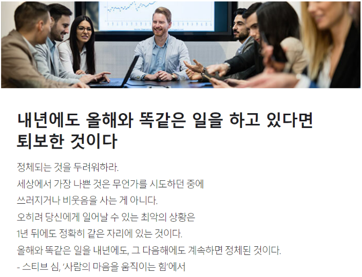 정체는 퇴보입니다. 늘 무언가 새로운 것을 시도해보아야 합니다.