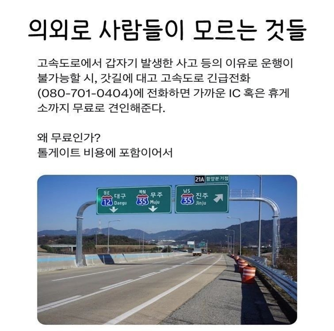 한국도로공사 무료견인서비스 단 고속도로만