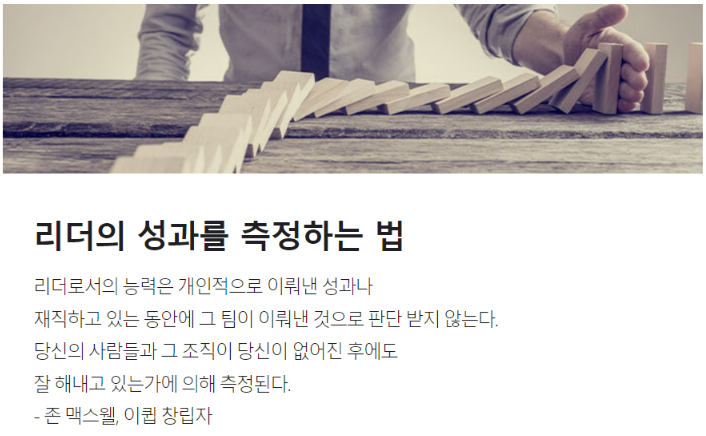 지속적으로 탁월한 성과를 창출할 줄 아는 조직을 만들어 놓고 떠나는 것입니다.