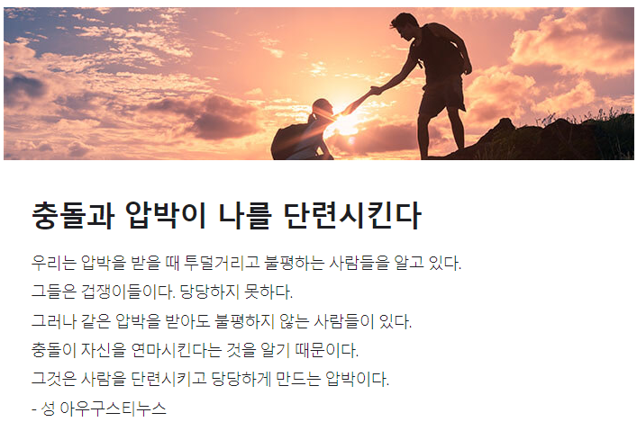 “그대를 괴롭히고 슬프게 하는 일들을 하나의 시련이라고 생각하라.
