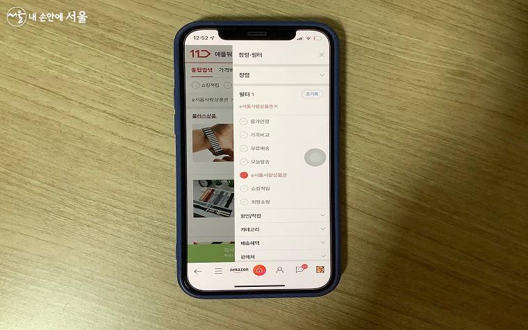 온라인 쇼핑을 주로 하는 필자의 입장에서 11번가에서도 서울사랑상품권을 사용할 수 있다는 점이 매우 솔깃했다. 하지만 11번가의 모든 상품을 이 상품권으로 구매할 수 있는 것은 아니다. e서울사랑상품권이 붙어 있는 상품을 대상으로만 구매가 가능하다. 한 가지 팁을 전하자면, 11번가 검색창에서 원하는 상품을 검색한 후, 필터를 통해 e서울사랑상품권을 선택하면 편하게 상품권 적용 상품을 찾을 수 있다.