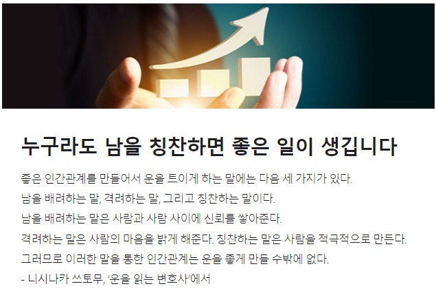 배려하고, 격려하고, 칭찬할 줄 아는 사람이 성공합니다.