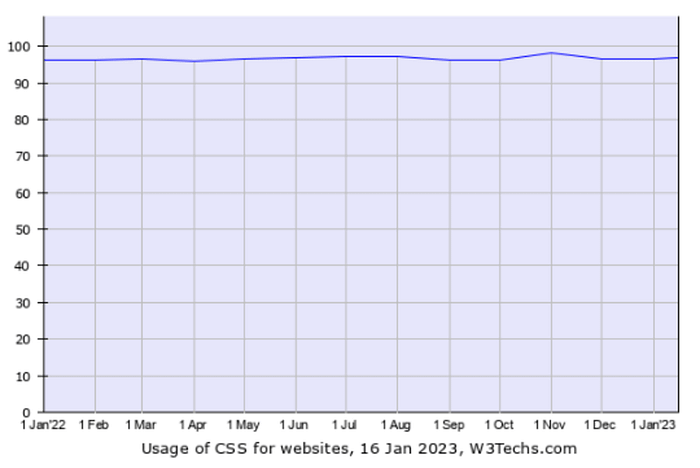 According to W3Techs, as of January 2023, approximately 96.9% of websites use CSS, which itself shows it is an integral part of modern web design.