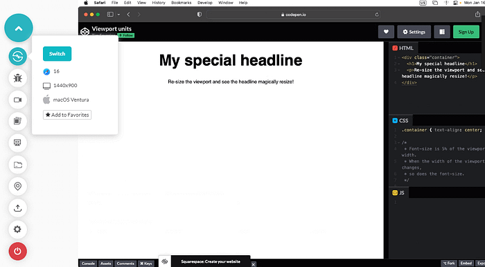 Thank goodness CSS now supports new relative lengths and viewport specifications. A few of these are “vw”, “svw”, “lvw”, and “dvw”. These measurements are 1% of the width of the small, large, and dynamic viewport sizes and the UA-default viewport size.