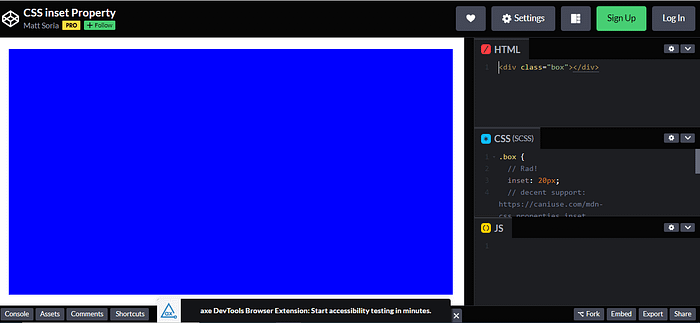 The Inset property helps to set the distance between the element and the parent element. It replaces the four properties: Top, Right, Left, and Bottom, and allows you to see the inset of the elements from all four sides in a single command. CSS Inset property requires adding all four commands for positioning.