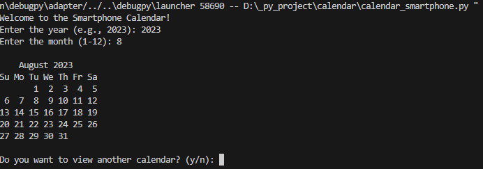 choice = input("Do you want to view another calendar? (y/n): ")