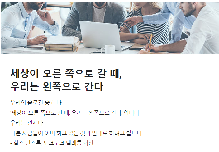 ‘세상이 오른 쪽으로 갈 때, 우리는 왼쪽으로 간다.’입니다.