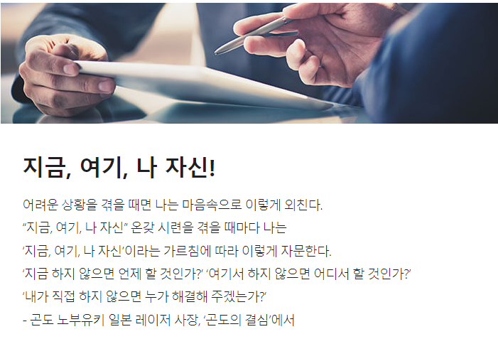 ‘지금 하지 않으면 언제 할 것인가?’ ‘여기서 하지 않으면 어디서 할 것인가?’