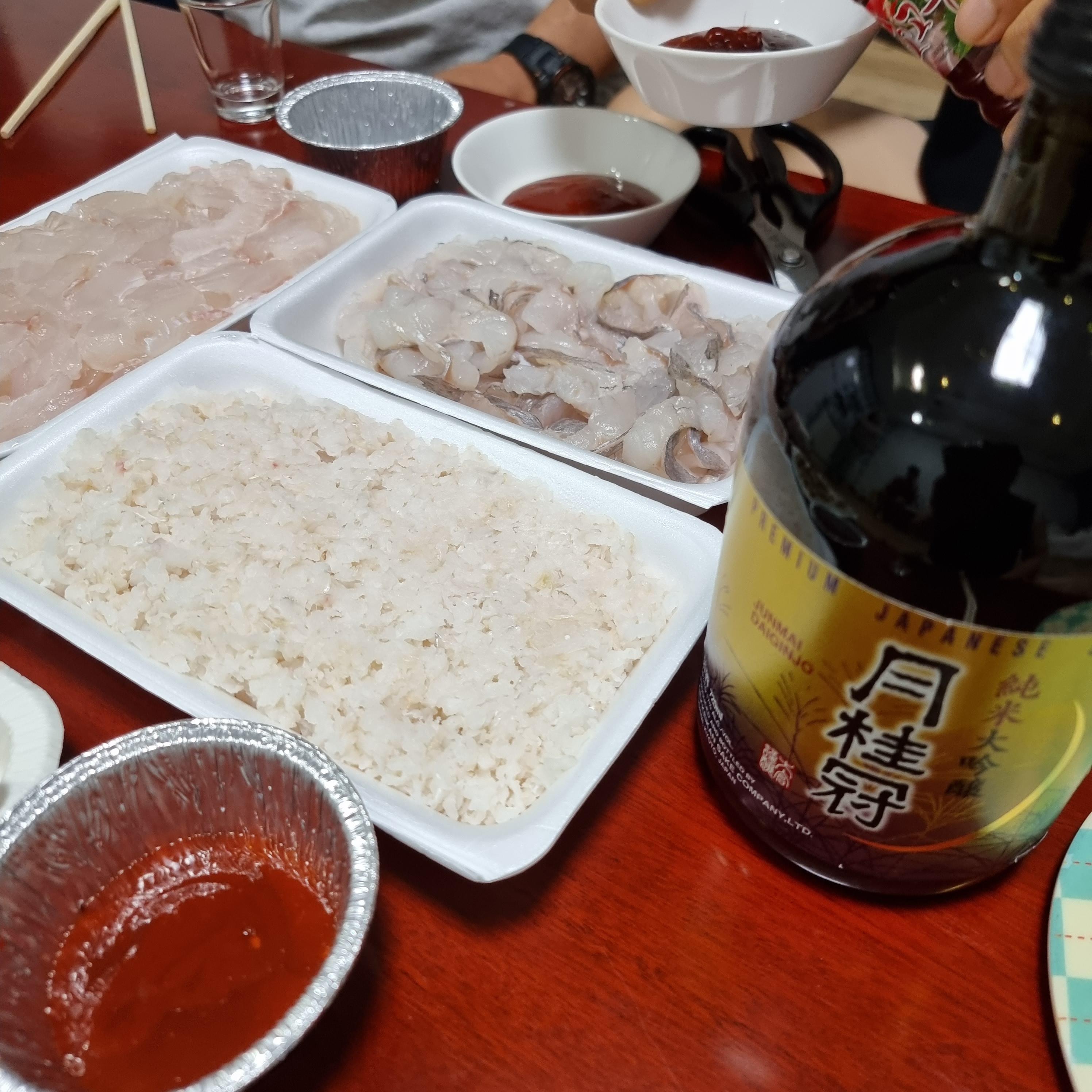 저녁 8시쯤 도착해서 가지고온 회 먹고 , 좋은데이로 간만의 회포를 풀었다.