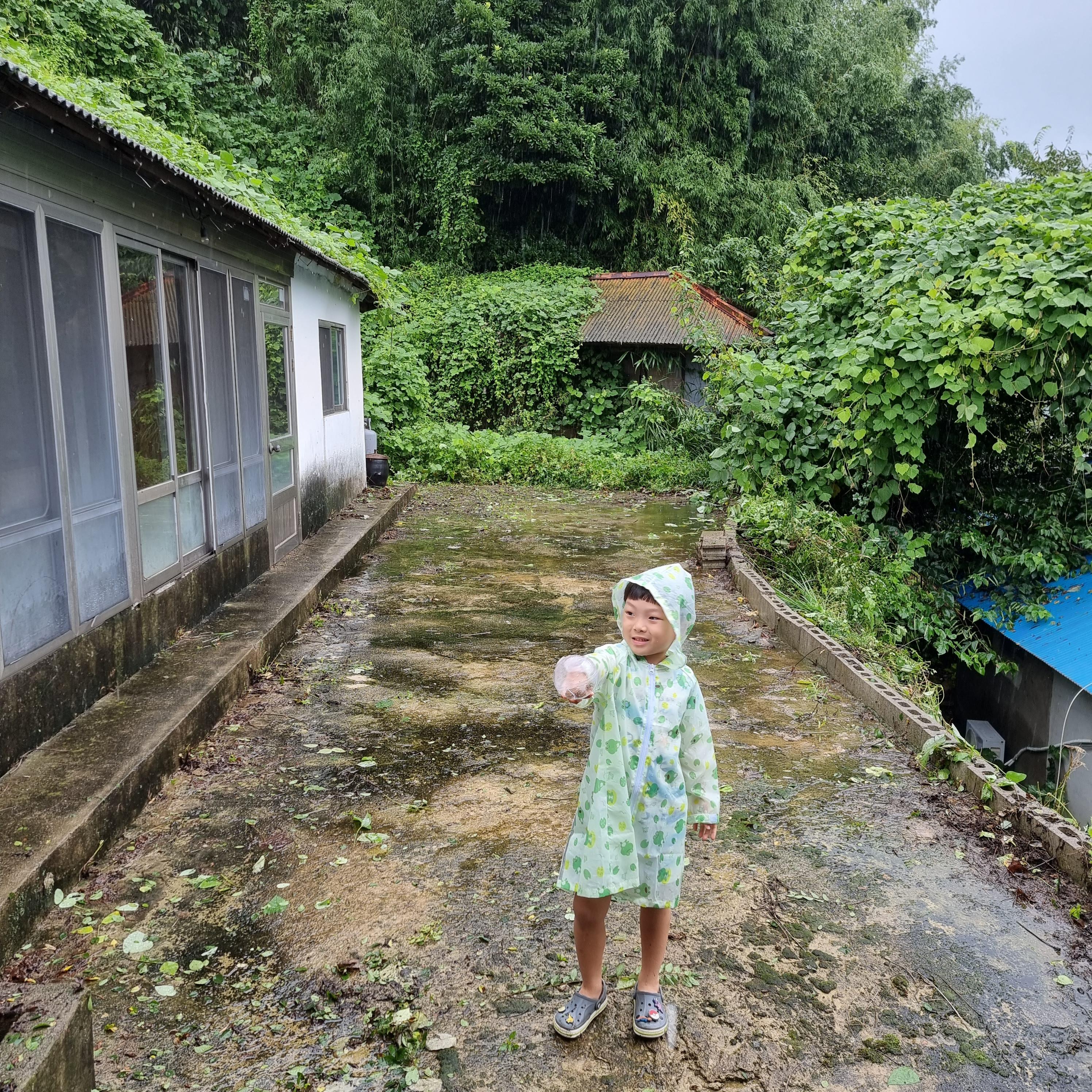 다음날 일찍 시골집으로 이동. 마당 한번 정리하고. 해솔이는 곤충,동물 관찰. 도룡용도 있었다.