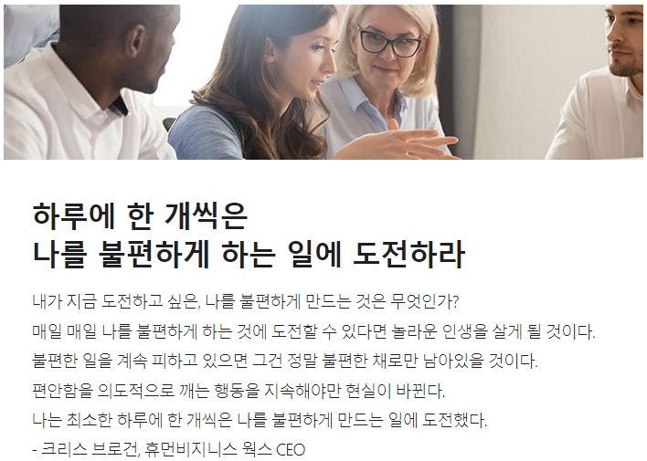 ‘불편함을 감수하라. 불편한 데 익숙해져야 한다.