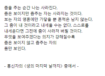 내세운다면 그전에 춤이 사라져 버릴 것이다.